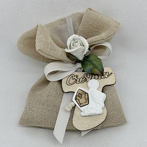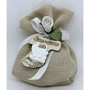 SACCHETTO BEIGE IN LINO GARZATO CON APPLICAZIONE COMUNIONE (copia)
