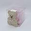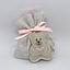 Sacchetto beige e rosa con sostegno orso in legno rosa e nastro di raso rosa.